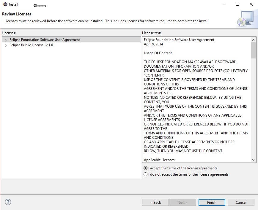 - จากนั้นเข้าหน้าจอ License Agreement เลือก Accept แล้วกด Finish ครับ