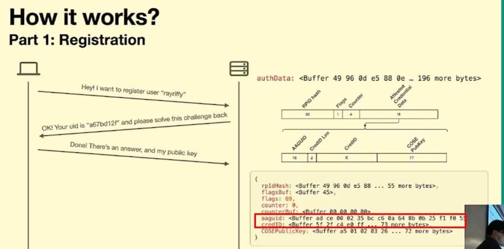 - Server จะส่ง challenge มาให้หา Solution + AllowedCredential (CredId)