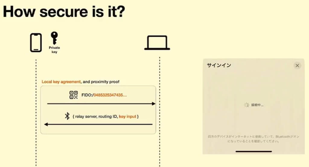 - ถ้าใช้เครื่องอื่นต้องมาเพิ่ม ใช้ FIDO Protocol ผ่าน Bluetooth (End2End Communication) จากนั้น Flow เดิมและ challenge มาให้หา Solution