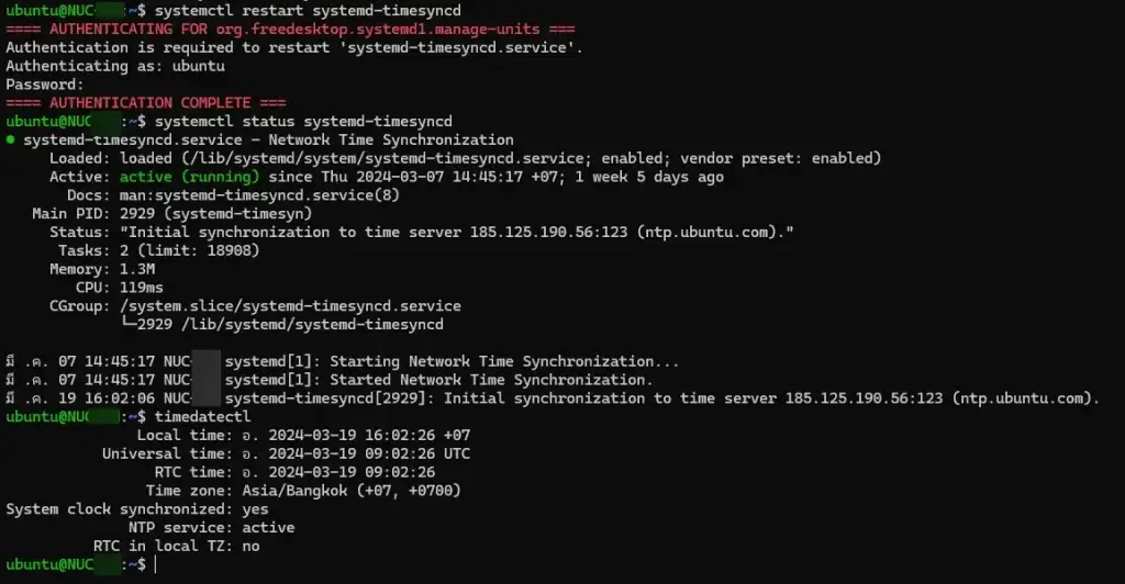 - After fixing network issue, restart the service and check service systemd-timesyncd status