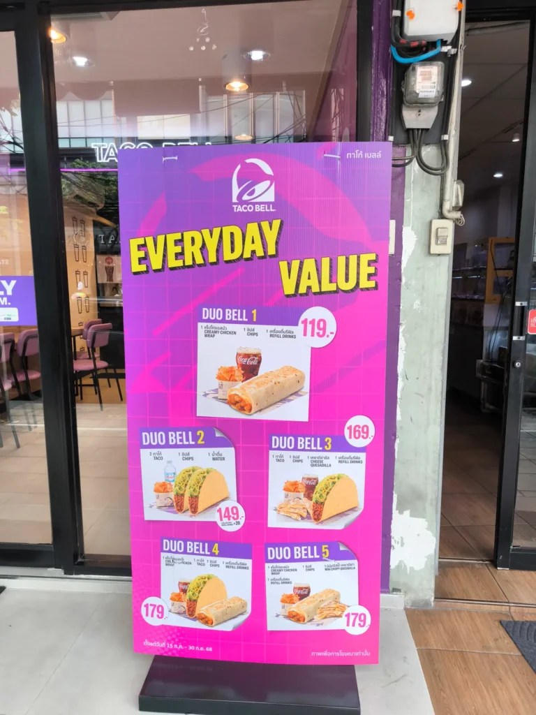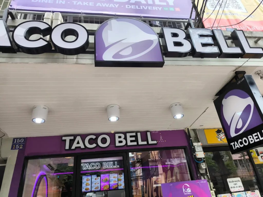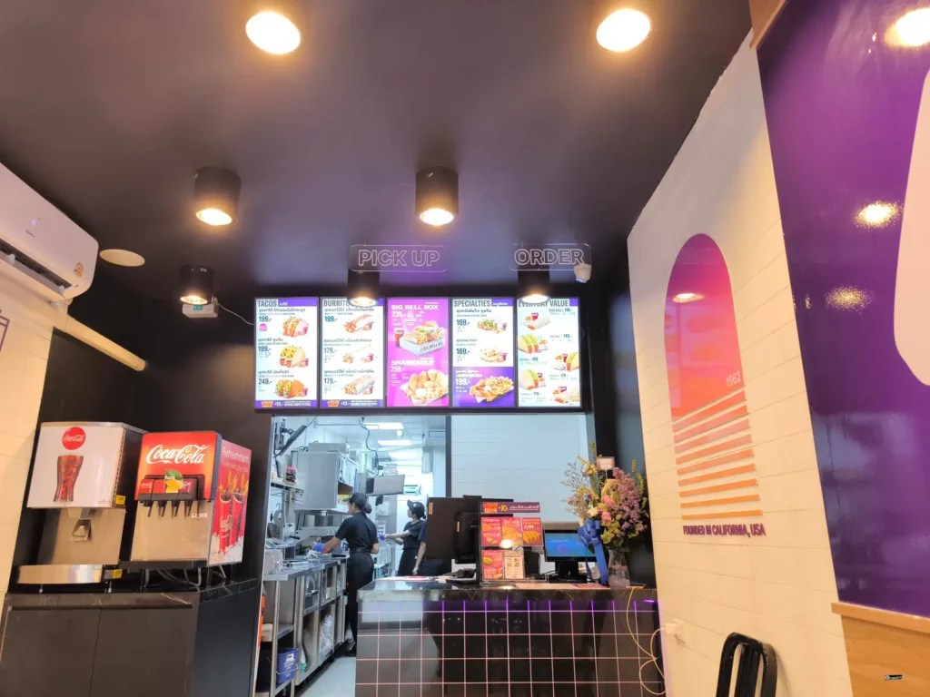 แล้วตอนออกเดินมากินข้าวเที่ยงเพิ่งสังเกตุว่า ตรงข้าม platform วงเวียนใหญ่ มี Taco Bell มาเปิดเงียบๆเลย เป็นตึกแถว 1 คูหาครับ เลยลองเข้าไปดู บรรยากาศตามรูปเลยครับ