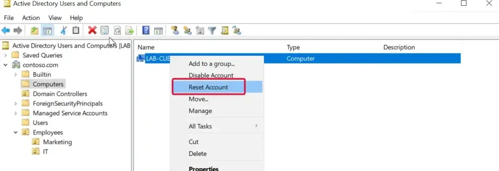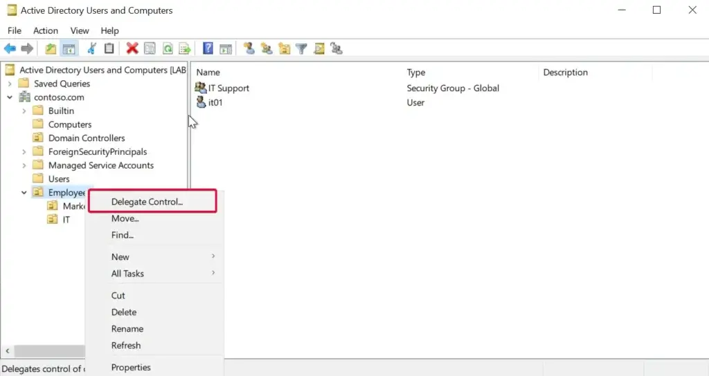 📌 Delegation of Control Reset Password ไป Employee / โดยคนที่ทำได้อยู่ใน Group IT Support