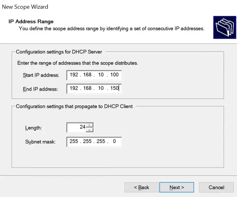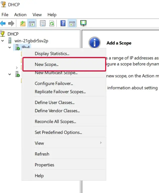 📌 Add DHCP Scope บอกว่าให้ Server จ่าย IP (IPv4/ IPv6) ช่วงไหน ถึงช่วงไหน / Subnet อะไร / หรือให้ข้ามช่วงไหน รวมถึงการกำหนดค่า Lease Duration (Default 8 วัน)