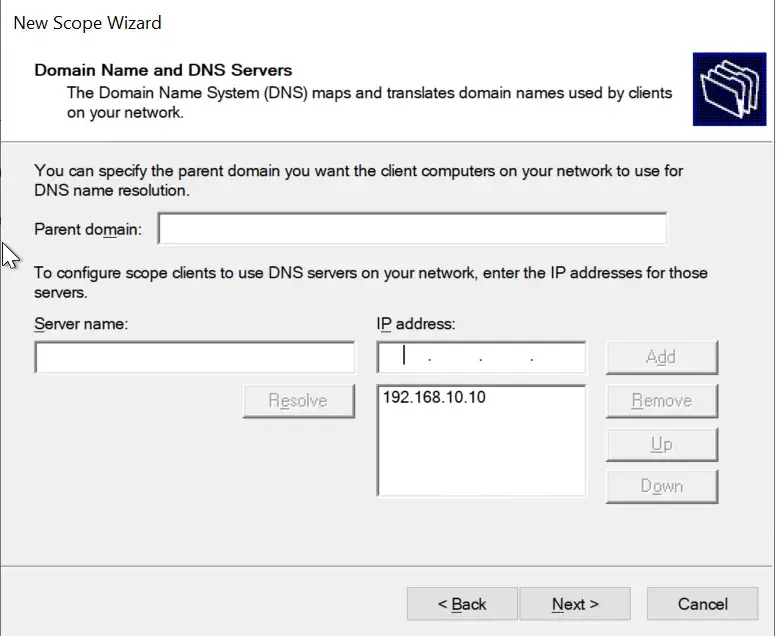 DNS Servers . . . . . . . . . . . : 192.168.10.10