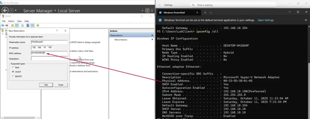 DHCP Server . . . . . . . . . . . : 192.168.10.10