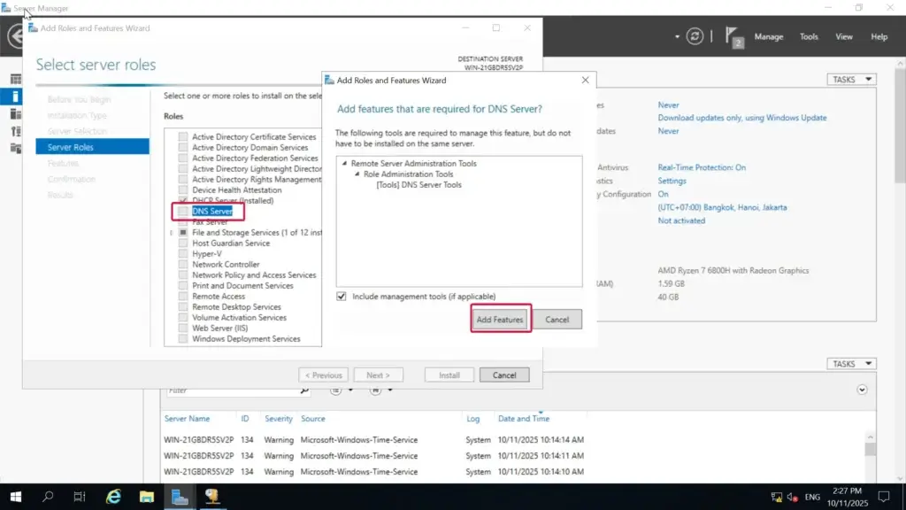 • Manage > Add Role and Feature > กำหนด Server เลือก DHCP