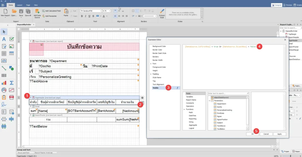 Create an expression for the GroupHeaderBand.Visible property as shown below