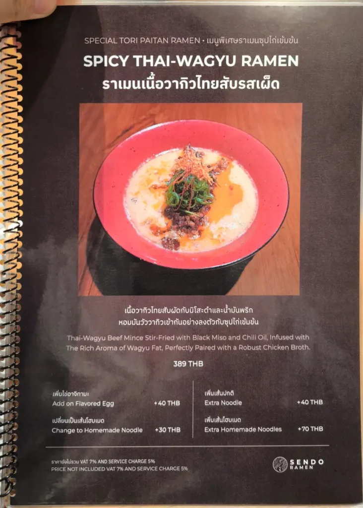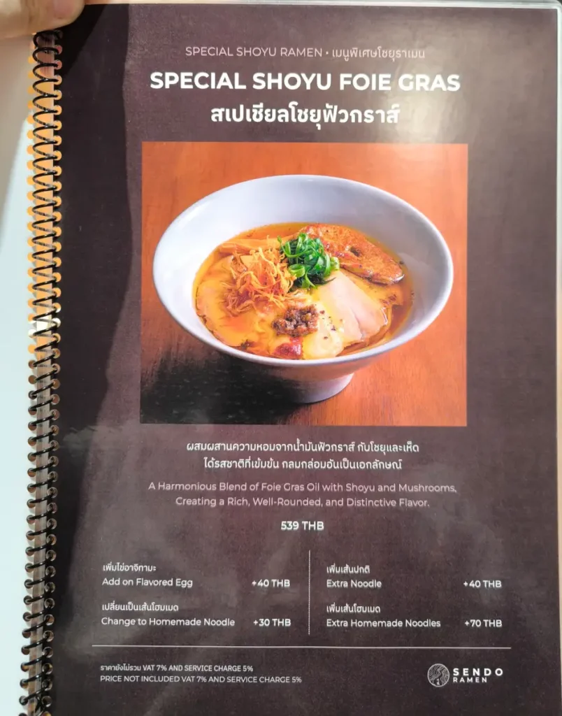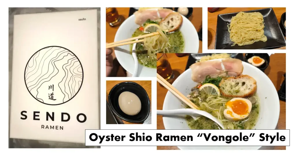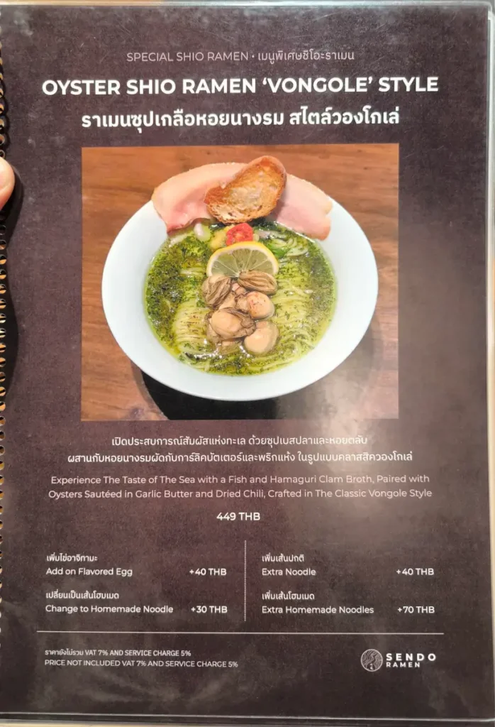 สำหรับวันนี้ที่จริงมีเมนูเล็งไว้ในใจแล้วครับ SENDO Ramen - Oyster Shio Ramen “Vongole” Style เค้าบอกว่าทำวันละ 20 ชามเองนะ แล้วเหมือนเป็น Menu Special เฉพาะช่วงนะ เลยลองสั่งดูเจ้าเมนูนี้มี Option ราคาตามนี้เลย
