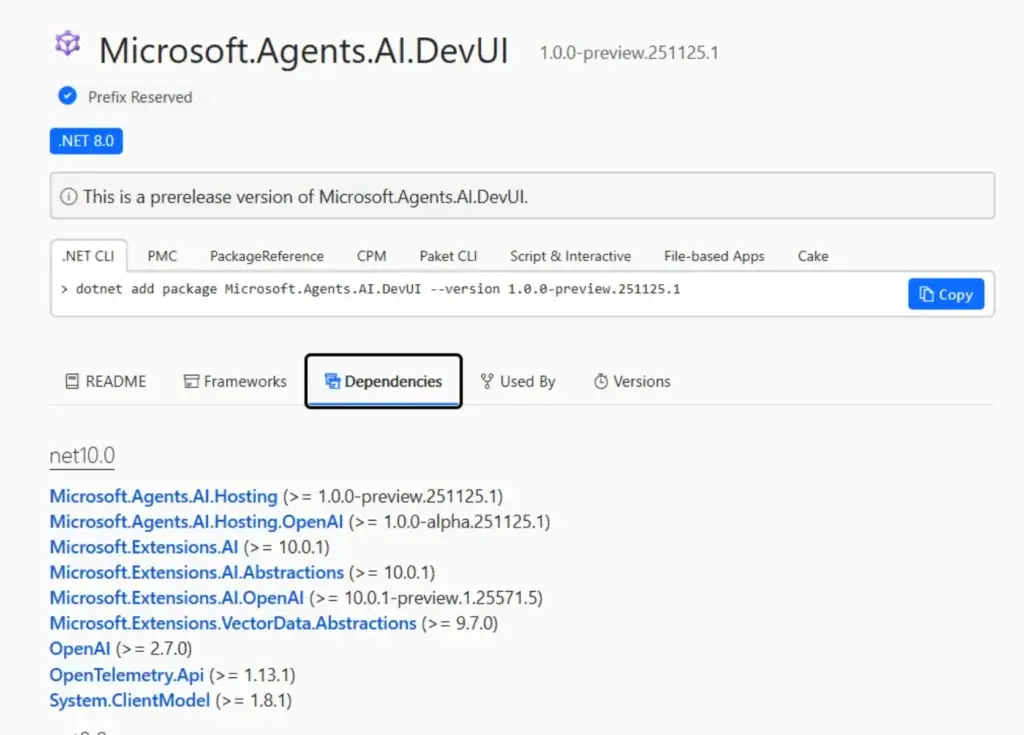 <PackageReference Include="Microsoft.Agents.AI.DevUI" Version="1.0.0-preview.251114.1" />
