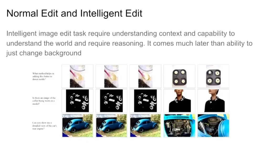 - Use Case ของ Unify MMLM จากเดิมที่เราแก้ไขภาพแบบปกติ เราทำแบบ Inteligent Edit ทำงานที่ซ้บซ้อนเข้าใจ context นั้นเอง เช่น มีภาพรถ ให้มัน Zoom โชว์เครื่องยกของรถยนต์