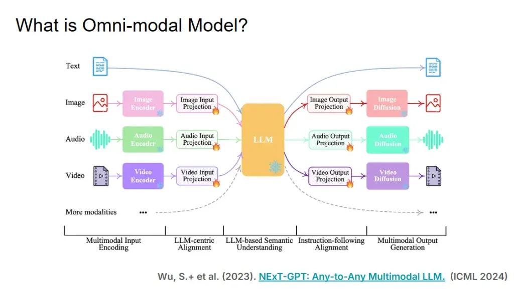 📌 Omni-Modal Models เป็น Model ที่รองรับประมวลผลในทุกมิติ text/ภาพ/เสียง อันนี้ Speaker เรียก modality ซึ่งแนวทางมี 2 แบบในงานวัจัย