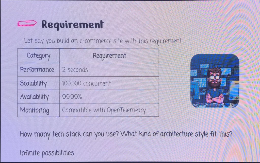 - Solution หลากหลาย อย่าง Tech Stack / Self Host / เน้น UX การเข้าใจ Fundamental เราจะได้ตอบคำถามว่าทำไมถึงเลือกของชุดนี้มาประกอบกัน แล้วเอาไป match กับโจทย์ constraint ที่ได้รับมา