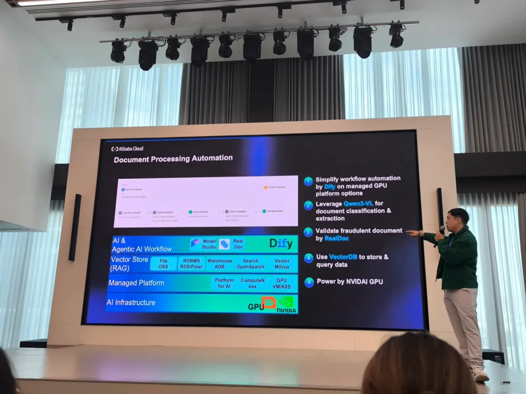 Alibaba Cloud มี DC ในไทยด้วยนะ รวมถึง AI Infra ซึ่งตอนแรกตัวทำขึ้นมาใช้กันเอง ของเครือ Alibaba AMap / Taobao เห็นว่ามันมีอะไรที่เสริมกัน รองรับ Req /Tx มาก ช่วงวันคนโสด 1111 ถ้ามองในตัว Taobao มีหลาย Service มา Serve มีเบื้องหลังเป็น AI อย่างตัว Image Search / Smart Logistic / Intelligent Customer Service (Chat Bot ลดการใช้คนได้เกือบๆ 98% 7 แสนคน) / Visual identity / Smart Home และ Realtime Transalation