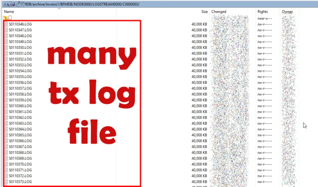 - /invsins1/BFMDB/archive/invsins1/BFMDB/NODE0000/LOGSTREAM0000/C0000003 มี Tx Log เต็มเลยครับ