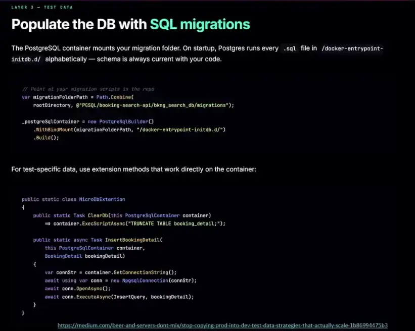 📌 ใน TEST CONTAINERS ของ Database ยังสามารถใช้ Database Migration เพื่อมาเตรียม Data สำหรับ Test Case ต่างได้ด้วย