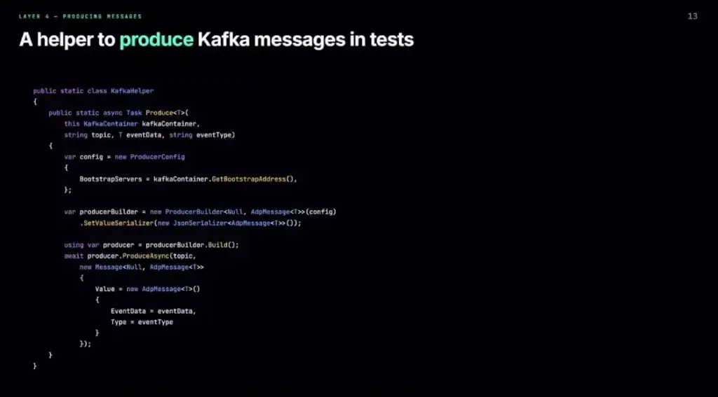 │ │ ├── KafkaHelper.cs → Extension: produce messages
