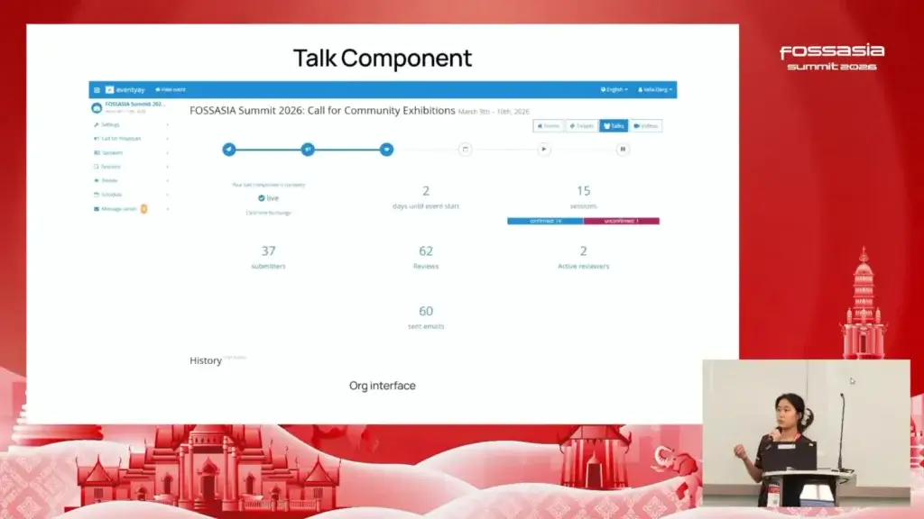 การแนะนำฟีเจอร์ใหม่ของ Eventyay All-in-one สำหรับผู้จัดงานประชุม ตั้งแต่การเปิดรับสมัครวิทยากร (Call for Speakers) / การตรวจทาน Session / Review / Conflict of Interes), ไปจนถึงการจัดตารางเวลาที่ง่ายขึ้น