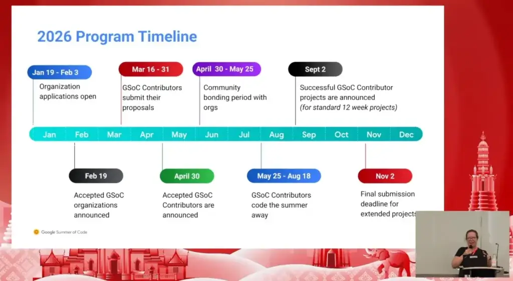 📌Google Summer of Code เป็นโปรแกรม Open Source ที่จัดขึ้นในรูปแบบออนไลน์ โดยมีวัตถุประสงค์หลักเพื่อ ดึงดูดผู้มีส่วนร่วมหน้าใหม่ (New Contributors) เข้าสู่การพัฒนาซอฟต์แวร์โอเพนซอร์ส ภายใต้การดูแลของที่ปรึกษา (Mentors) จาก Open Source Community ต่างๆ ทั่วโลก