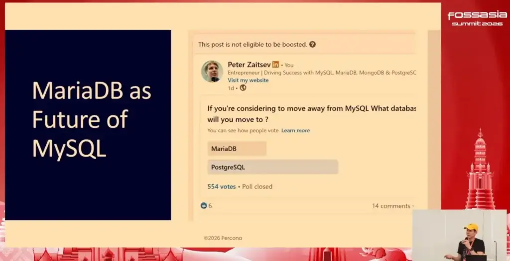• Vendor-neutral Association - แบบ Postgres อันนี้จะต่างกับ MariaDB มีบริษัท MariaDB PLC และมูลนิธิ MariaDB Foundation ทำงานร่วมกัน