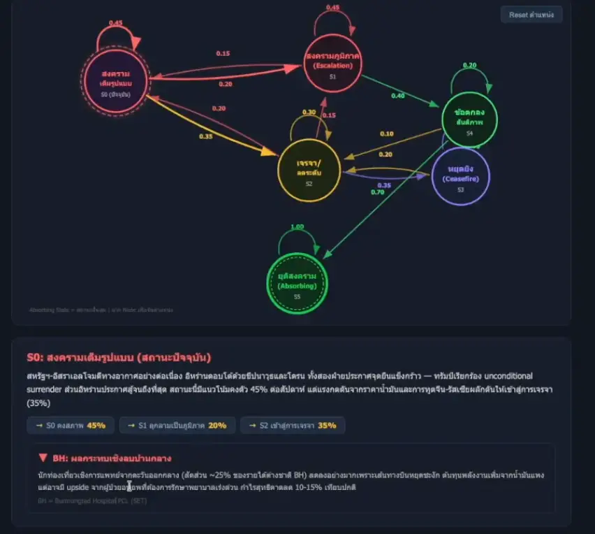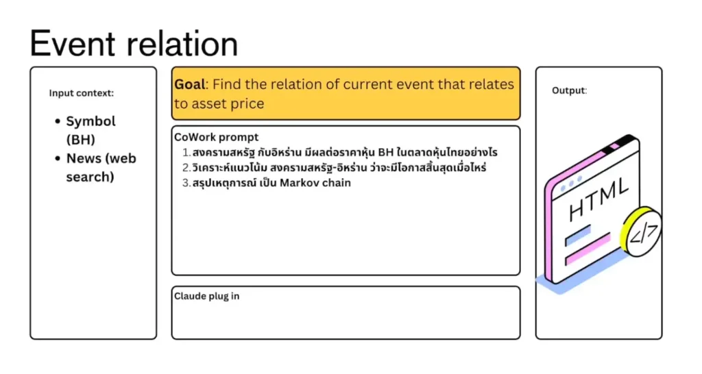 📌 อีก Sample markov chain สรุปความสัมพันธ์ว่าข่าว มันมีผลกับ Event ถัดไปอย่างไร และ Vibe ให้ ทำ web ลองทำ Monte Carlo Simulation