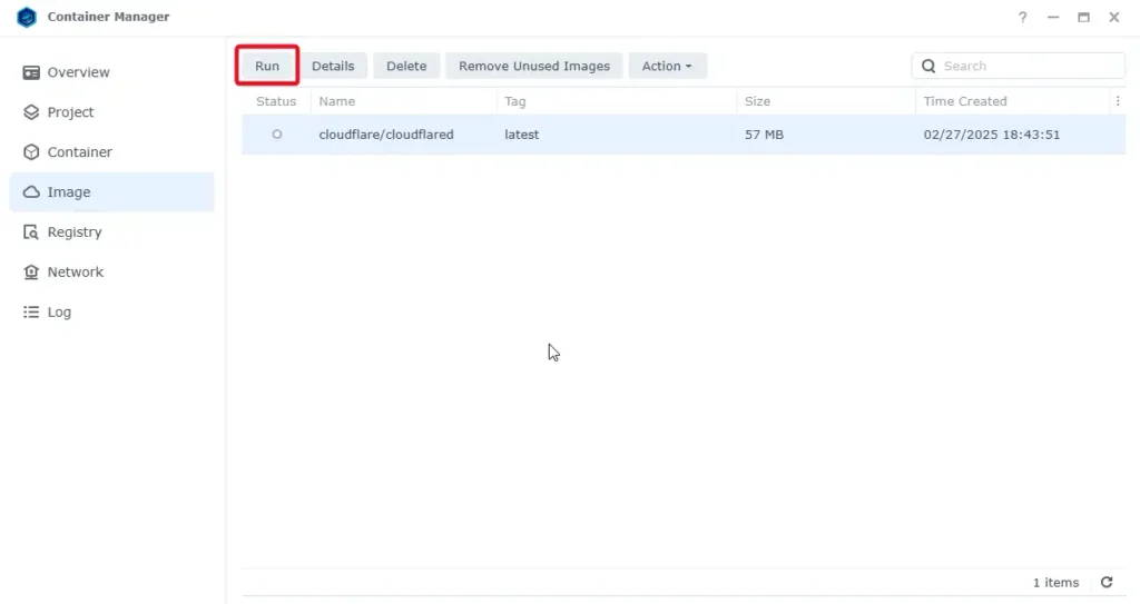 จากนั้นเข้าไป Image > เลือก Container cloudflare/cloudflared จากนั้นกด Run เลย